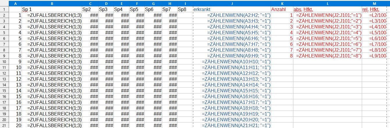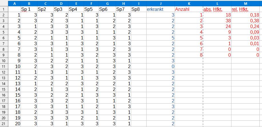 • Mit [Größe des Blocks: 8] wird festgelegt, das wir den Krankenstand von 8 Spielerinnen simulieren.